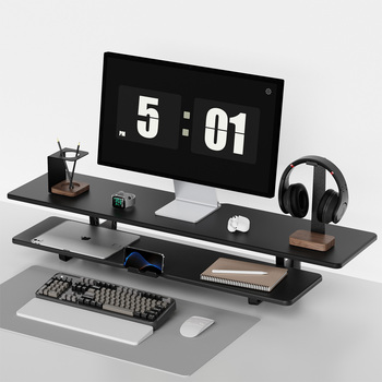 Ahşap monitör yükseltici ahşap çift katmanlı depolama oyun bilgisayarı masa raf ev ofis için ekstra monitör standı