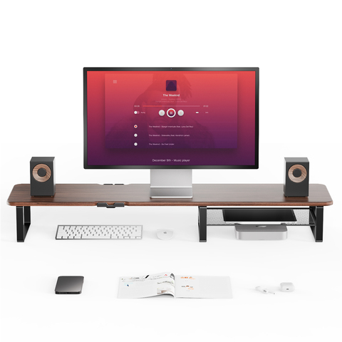Çift katmanlı PC monitörü yükseltici Laptop standı ceviz ahşap tarzı ofis mobilyaları ev ofis bilgisayar masası ergonomik depolama